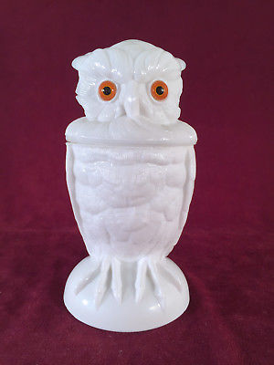 Atterbury Milk Glass Owl Jar Covered Dish