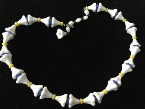 VINTAGE SIGNED HOBE MILK GLASS FLOWER CHOKER NECKLACE