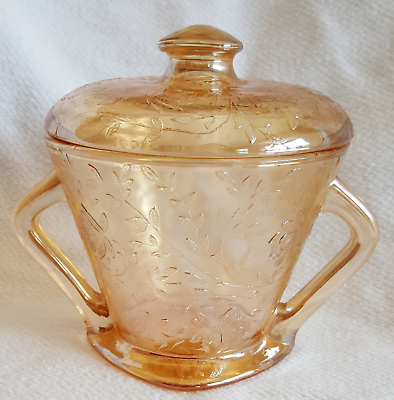 Title (ebay affiliate link): Jeanette Iridescent Floragold Depression Glass Sugar with Lid