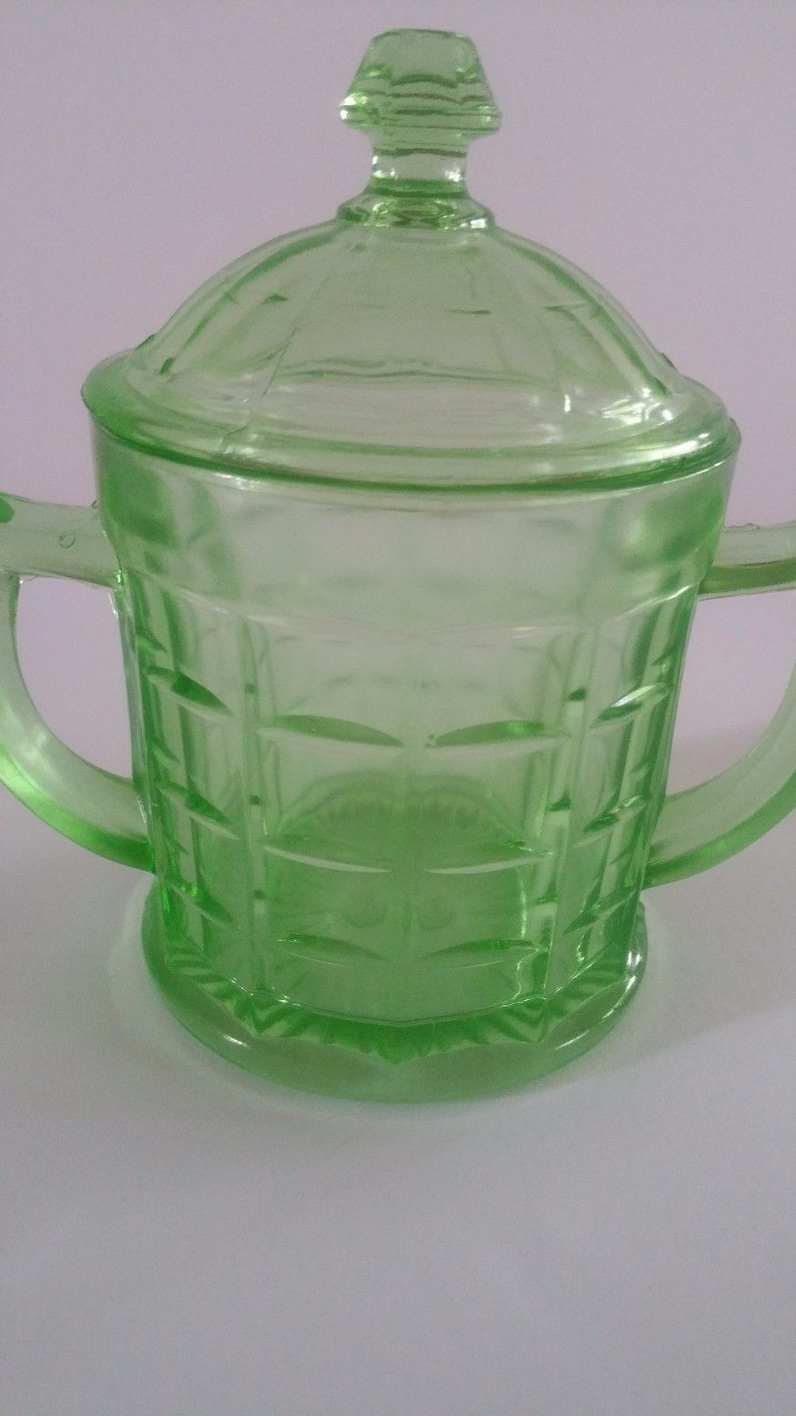 Title (ebay affiliate link): Green depression Anchor Hocking glass block optic covered sugar bowl