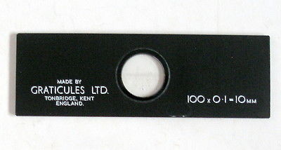 Title (ebay affiliate link): Cased STAGE MICROMETER MICROSCOPE SLIDE, by GRATICULES LTD,