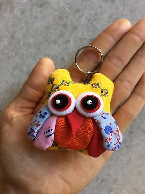 Thai Owl Key Chain Handmade Ring Fabric Cotton Crafts Vintage Souvenir Gift Cute