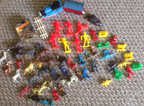 Vintage Toy Junk Drawer Lot, Figures, Animals, Soldiers