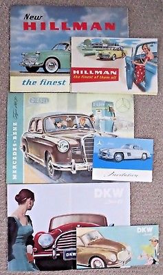 VINTAGE LOT 1950''s CAR BROCHURES - MERCEDES BENZ 180D - 300SL - DKW 3=6, HILLMAN