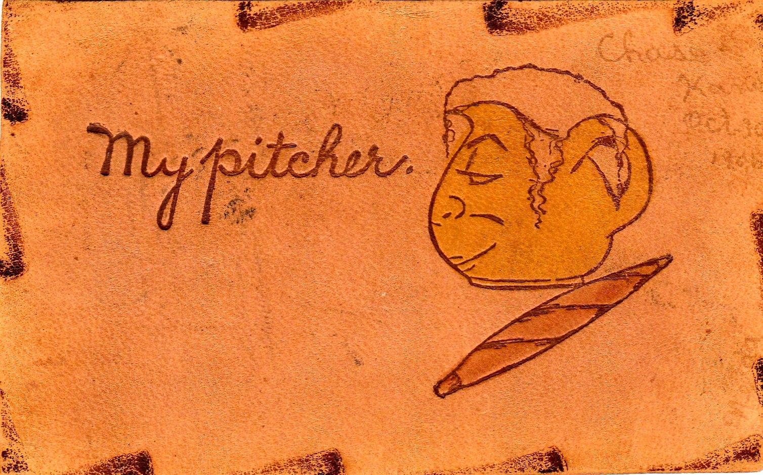 OLD VINTAGE LEATHER POSTCARD " MY PITCHER." 1906