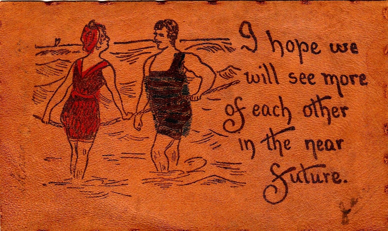 Title (ebay affiliate link): OLD LEATHER POSTCARD "I HOPE WE WILL SEE MORE OF EACH OTHER IN THE NEAR FUTURE."