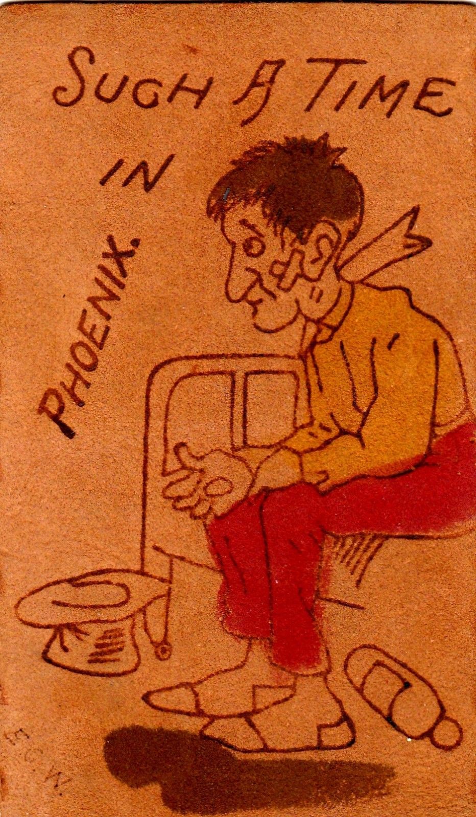 OLD VINTAGE LEATHER POSTCARD " SUCH A TIME IN PHOENIX."