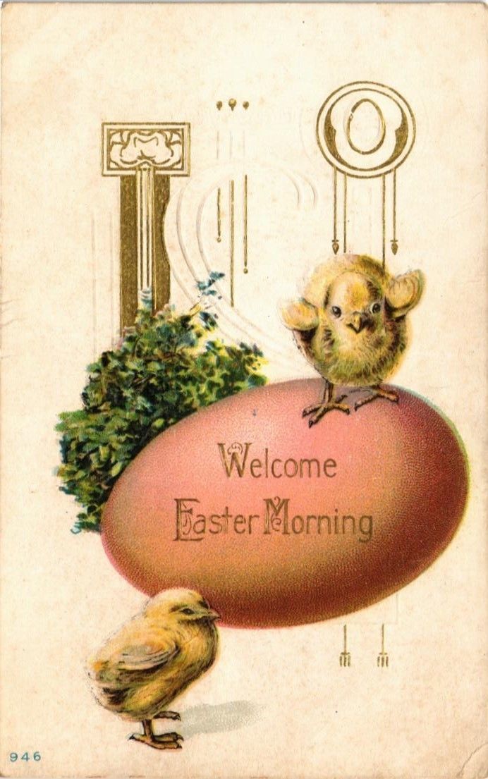DR JIM STAMPS US POSTCARD EASTER EMBOSSED BABY CHICKS AND EGG