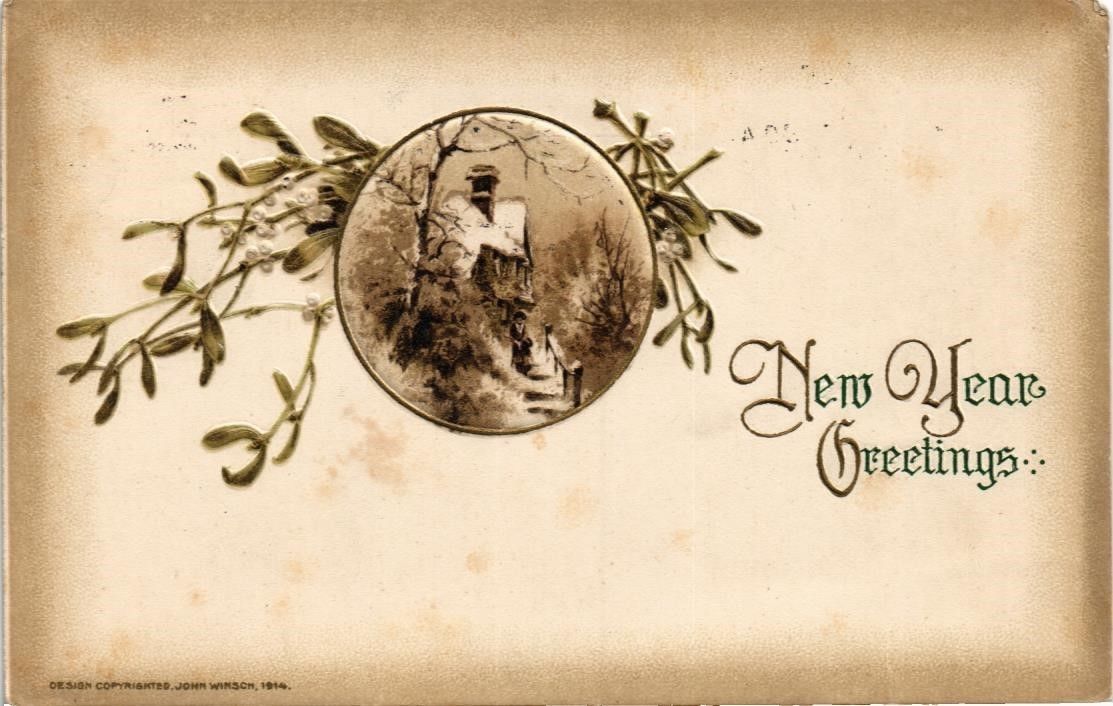 Title (ebay affiliate link): DR JIM STAMPS US POSTCARD NEW YEAR GREETING EMBOSSED LANDSCAPE 1914