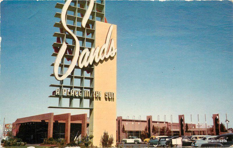 Title (ebay affiliate link): Autos 1957 Sands Hotel roadside Las Vegas Nevada Crocker postcard 9483