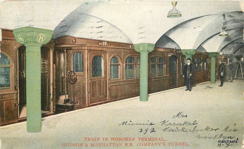 1908 New Jersey Railroad Train Hoboken Hudson Manhattan Union postcard 9503
