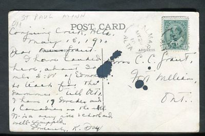 1910 Calmar Alberta Split Ring Cancel KEVII Postcard of Hamline University MINN