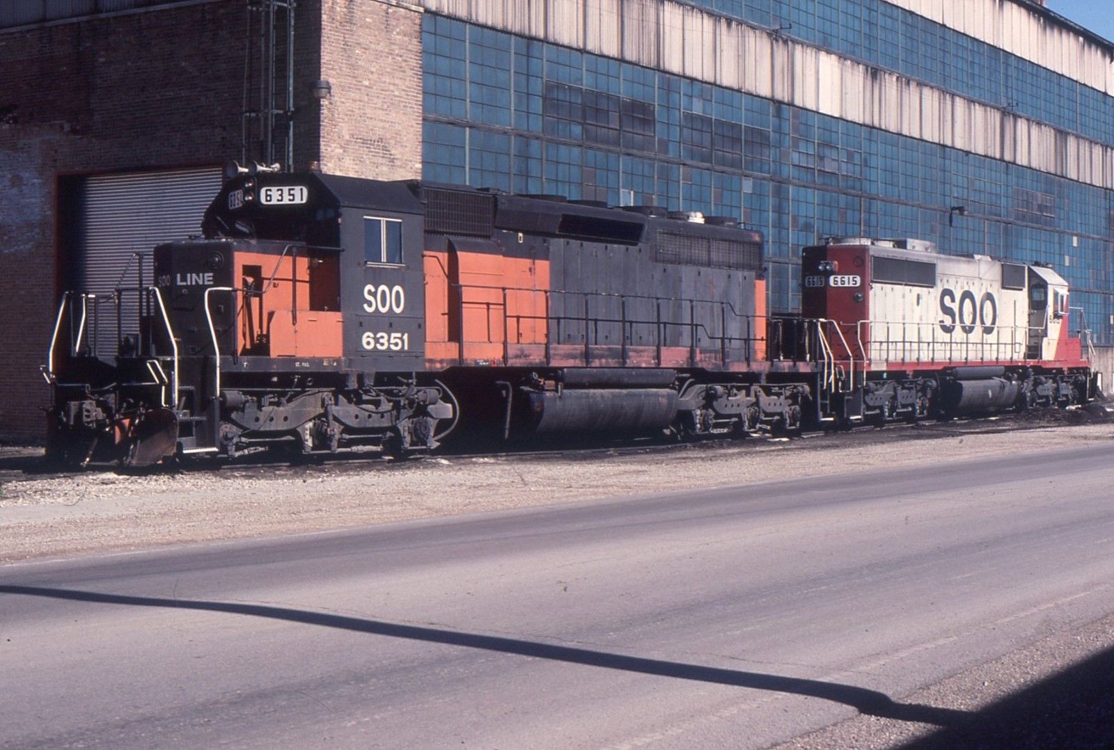 Soo Line EMD SD40-2 6351 black patch original kodachrome slide slides in 1988
