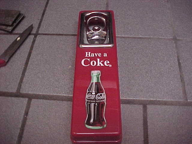 Title (ebay affiliate link): 1997 Coke Coca Cola Bottle Opener and Cap Catcher Wall Mount Stationary
