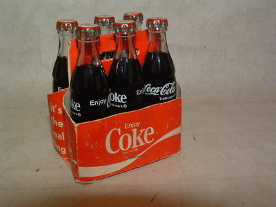 Title (ebay affiliate link): VINTAGE 6 PACK COCA-COLA MINI / MINIATURE 6 COKE BOTTLES IN CARTON