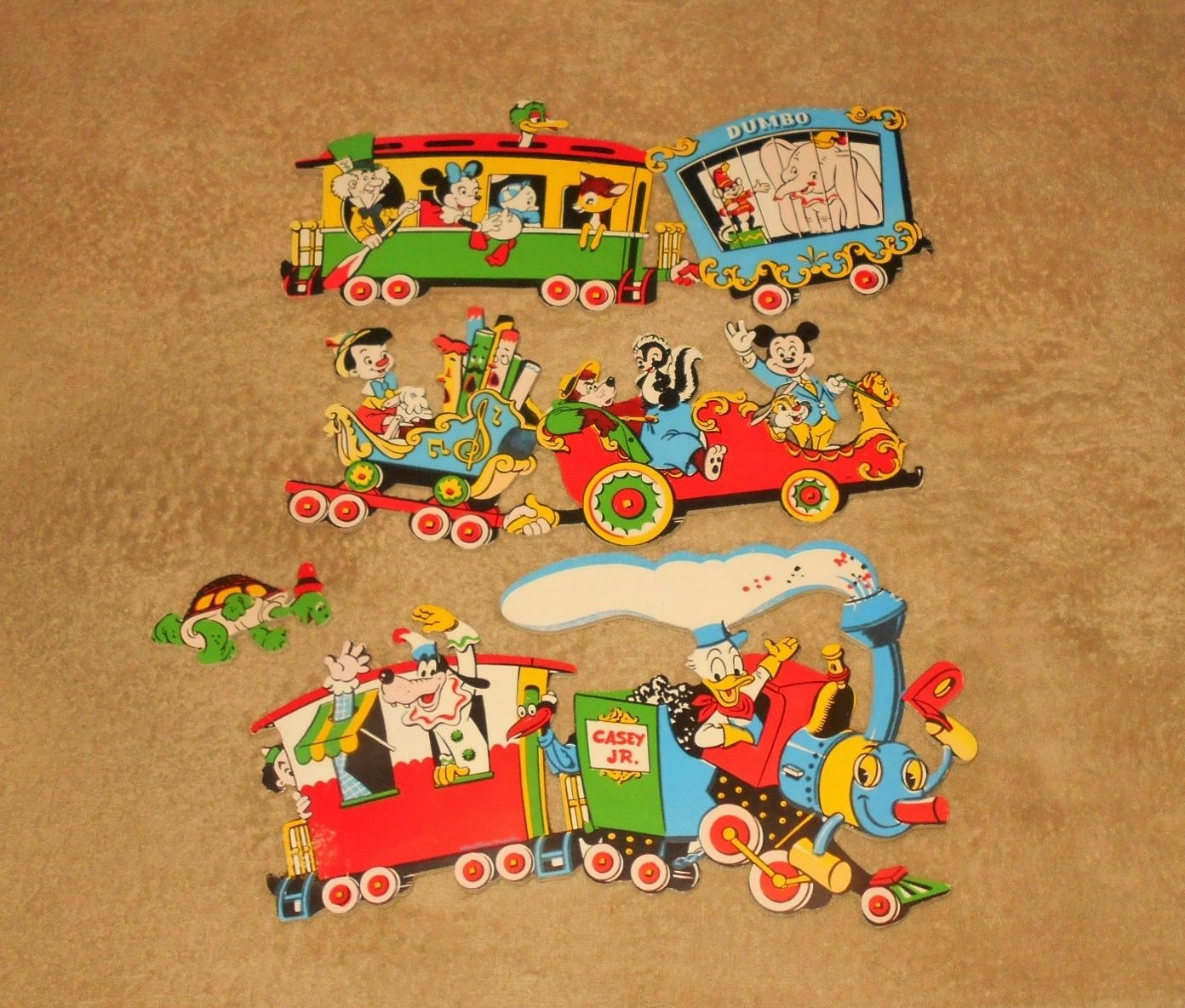Title (ebay affiliate link): Vintage Disney Casey Jr. Train 4-Piece Wall Hanging 50s/60s Room Decoration