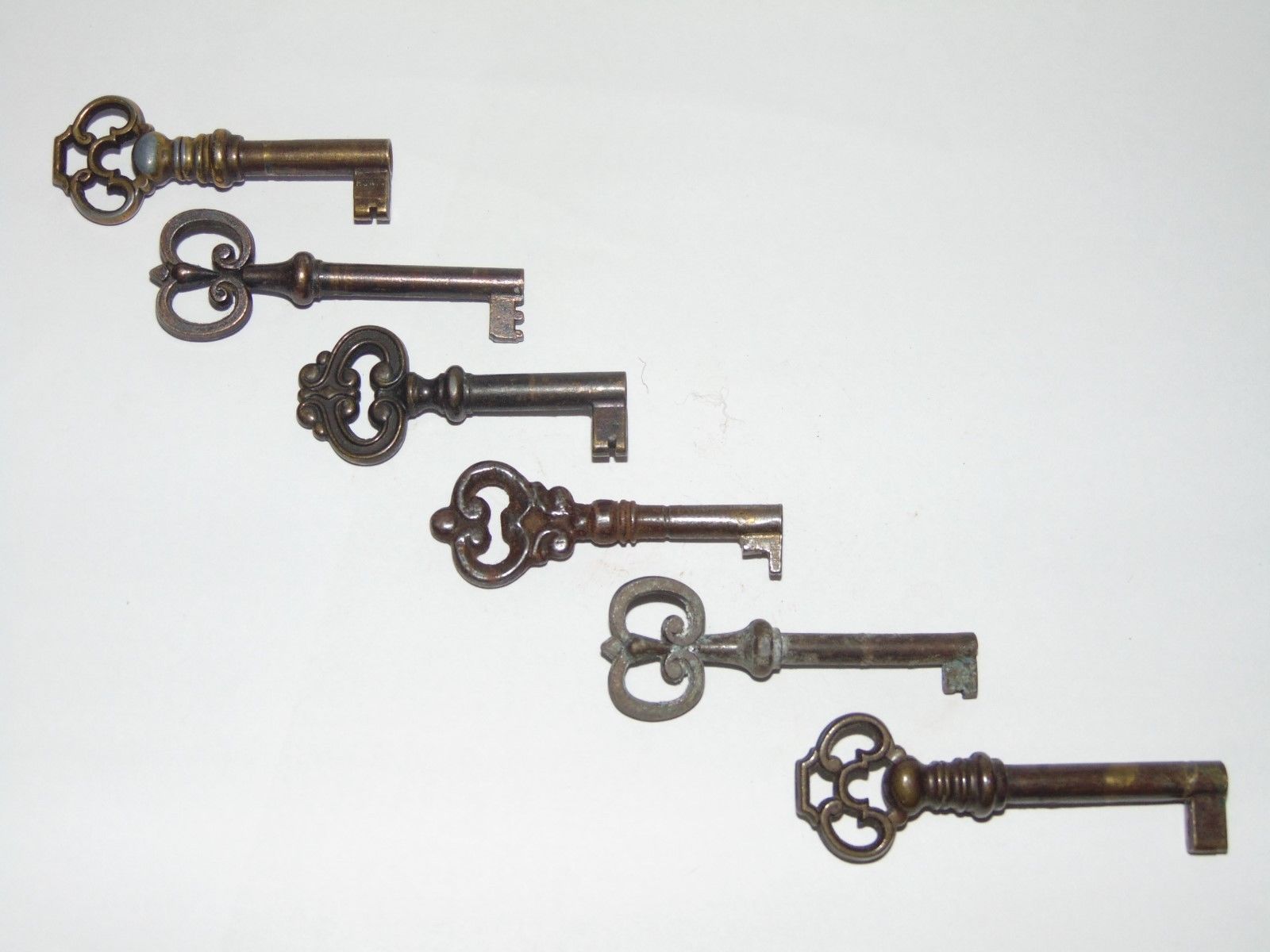 Title (ebay affiliate link): 6 VINTAGE ANTIQUE ORNATE KEYS FOR LARGER WRITING SLOPE BOX or SMALL FURNITURE