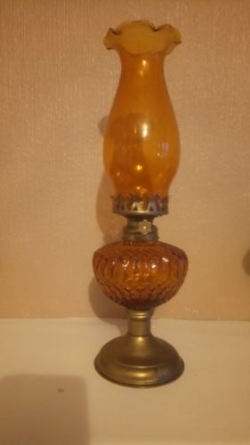 Title (ebay affiliate link): Antique orange glass & brass Oil Lamp with original wick unburnt