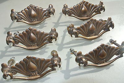 6 small DECO cabinet handles solid brass furniture antiques old style 90mm bolt