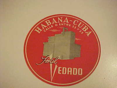 Vintage luggage label Hotel Vedado Habana Havana Cuba