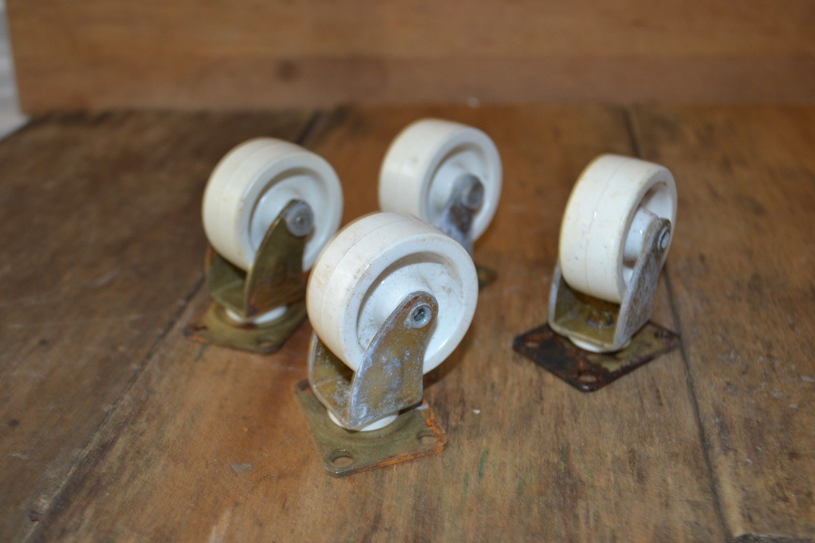 Title (ebay affiliate link): Lot of 4 Vintage White Plastic Furniture Wheels Rollers Casters