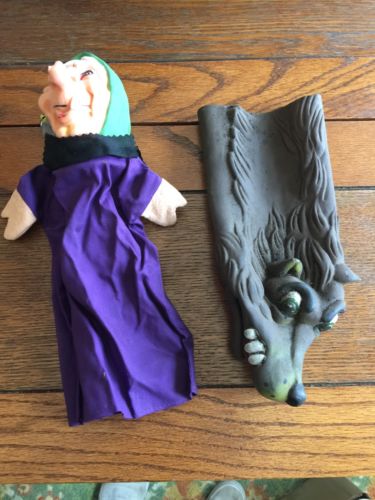 2 Gund Vintage German Witch And Wolf Hand Puppets