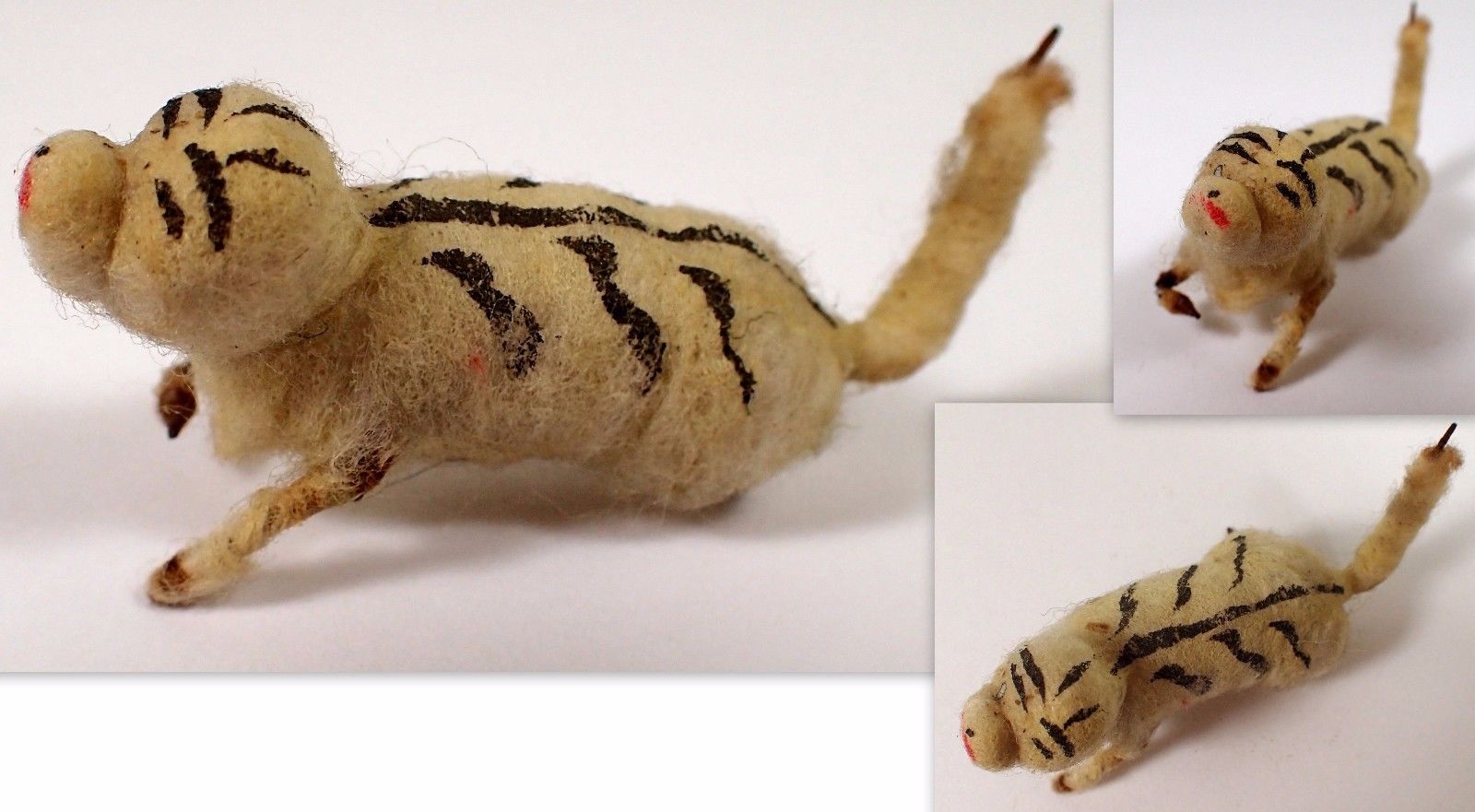 RARE Antique Vtg Feather Tree Christmas Ornament Spun Cotton Kitty Cat 2" Long