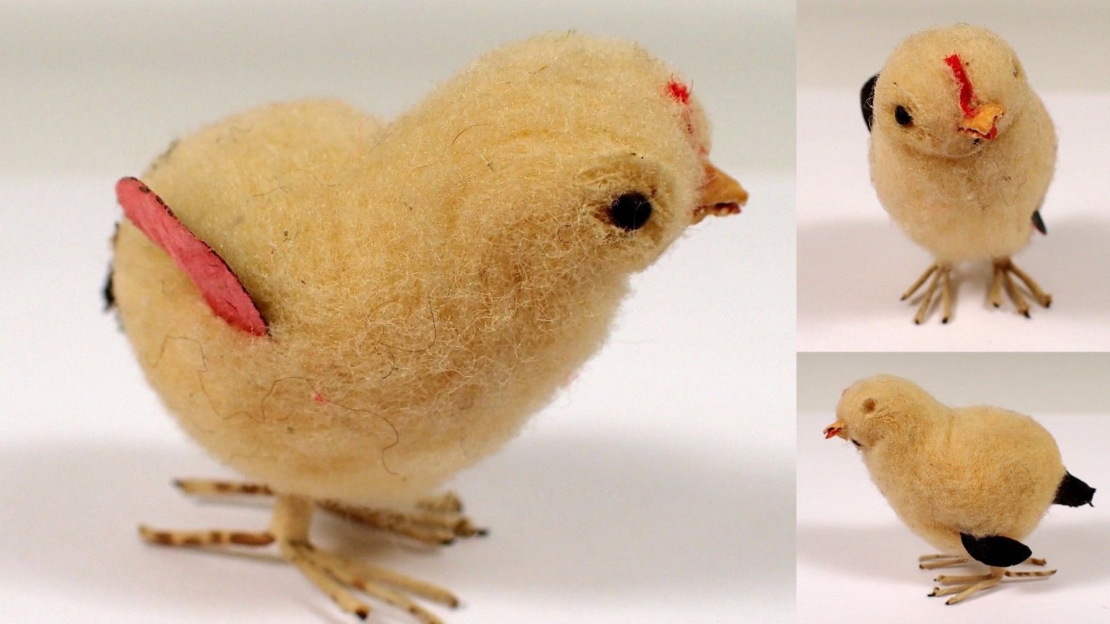 Title (ebay affiliate link): RARE Antique Vtg Feather Tree Christmas Ornament Spun Cotton Chick Chicken Bird