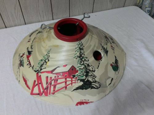 Title (ebay affiliate link): Vintage colormatic metal pictorial Christmas scene finish tree stand