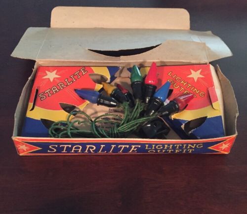 Title (ebay affiliate link): VTG String STARLITE XMAS LIGHTs OF 8~GE~W~ Cloth Wire & VG Original Box