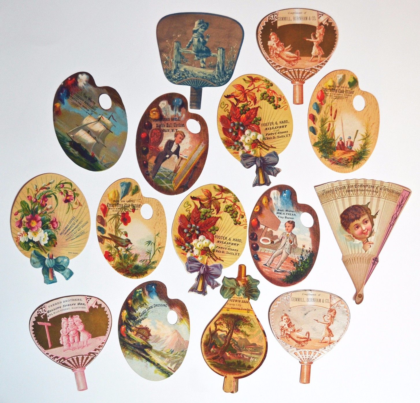 Title (ebay affiliate link): Lot of 15 Die Cut Victorian Trade Cards - Fans & Painter''s Palettes
