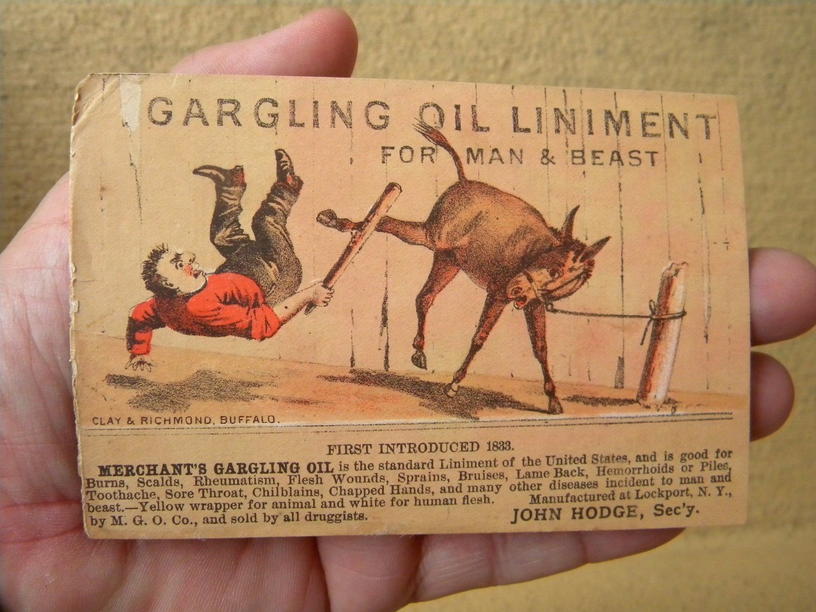 Title (ebay affiliate link): Block Island R.I. - GARGLING OIL VICTORIAN TRADE CARD # 68