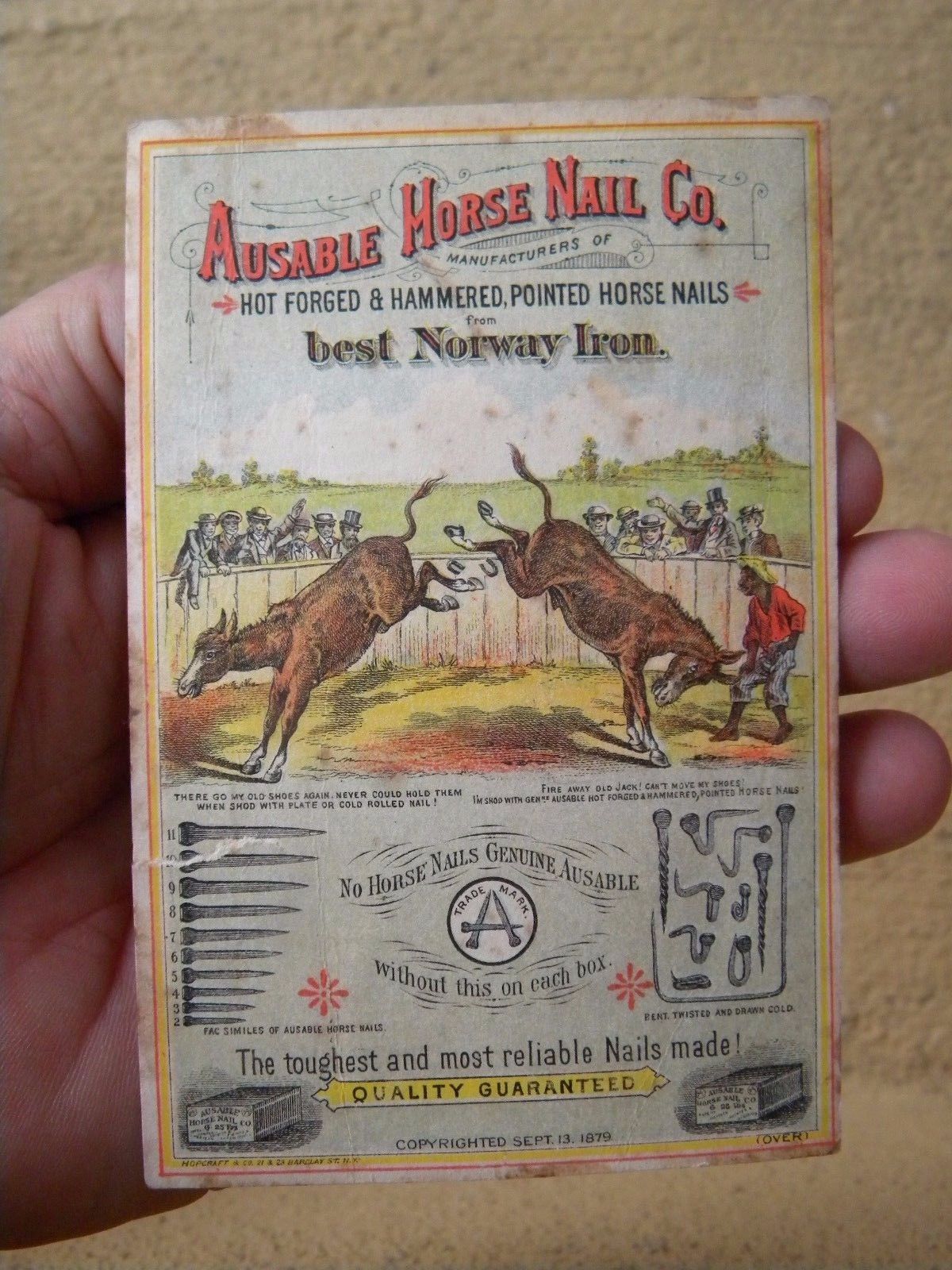 Title (ebay affiliate link): Providence R.I. - AUSABLE HORSE NAIL CO. Scarce VICTORIAN TRADE CARD # 69