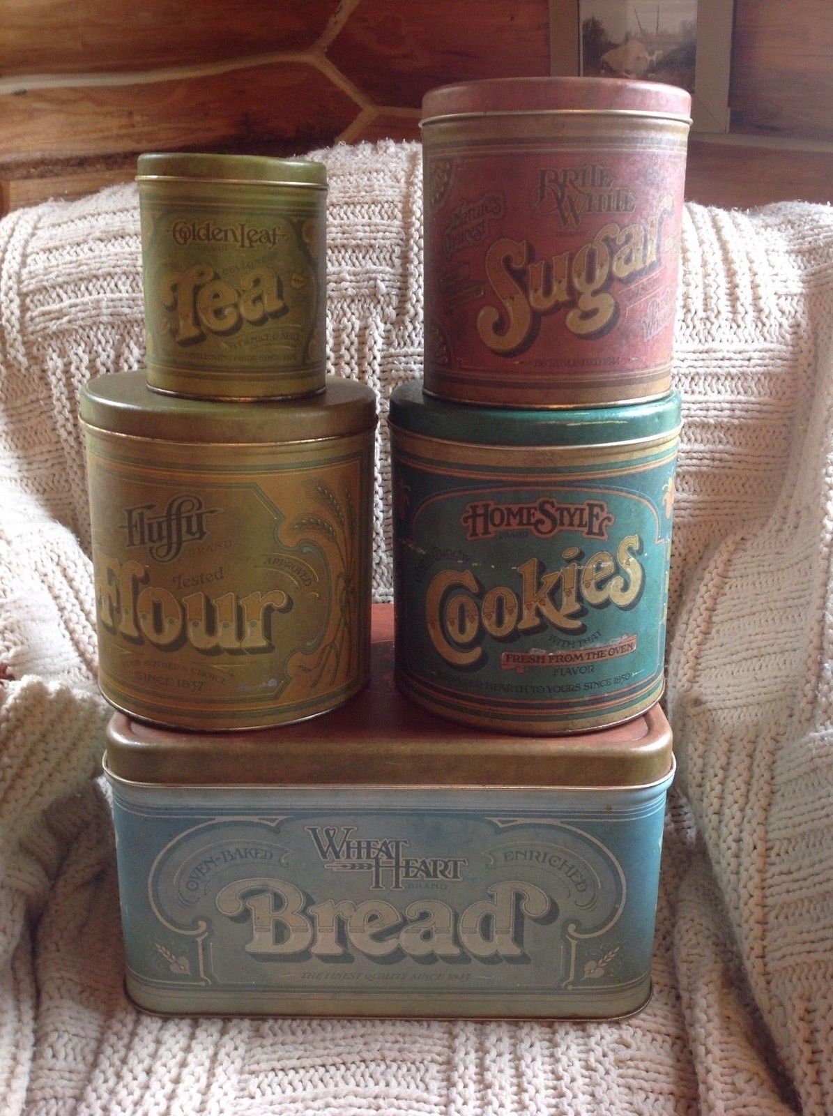 Wheat Heart Vtg metal bread box canisters Bollonoff