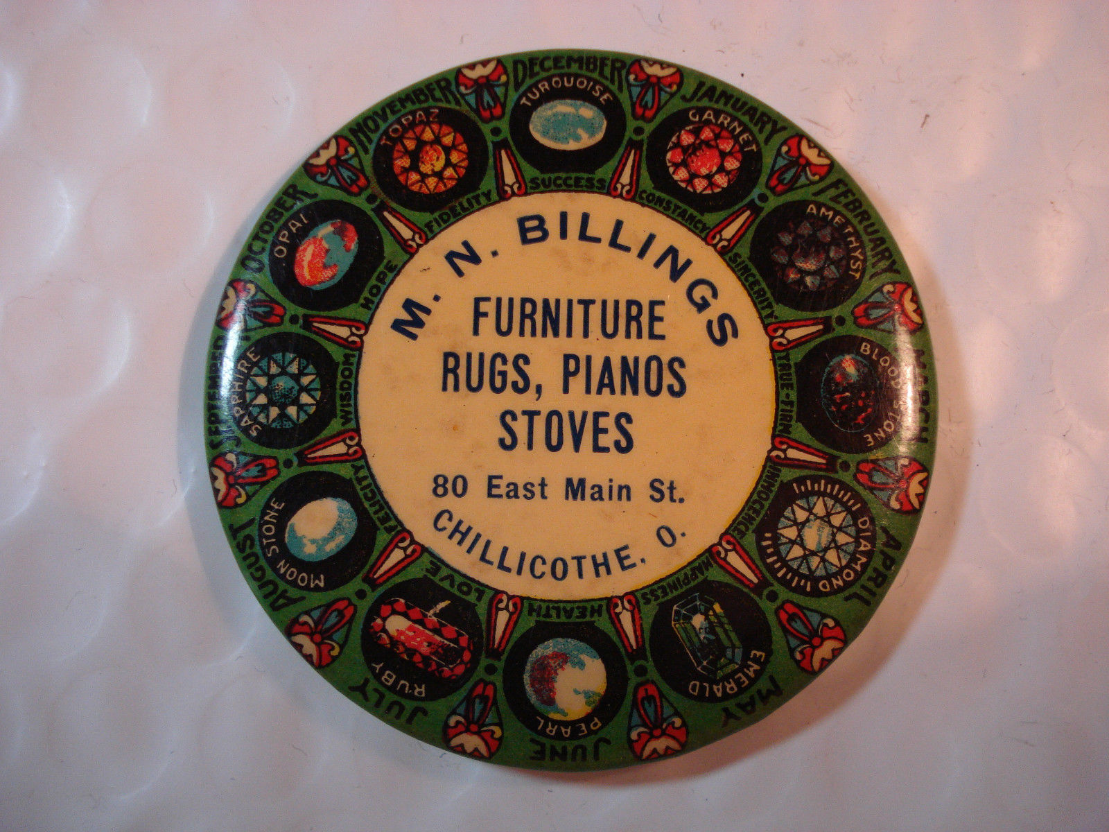 CELLULOID ADVERTISING POCKET MIRROR M.N. BILLINGS FURNITURE RUGS CHILLICOTHE OH