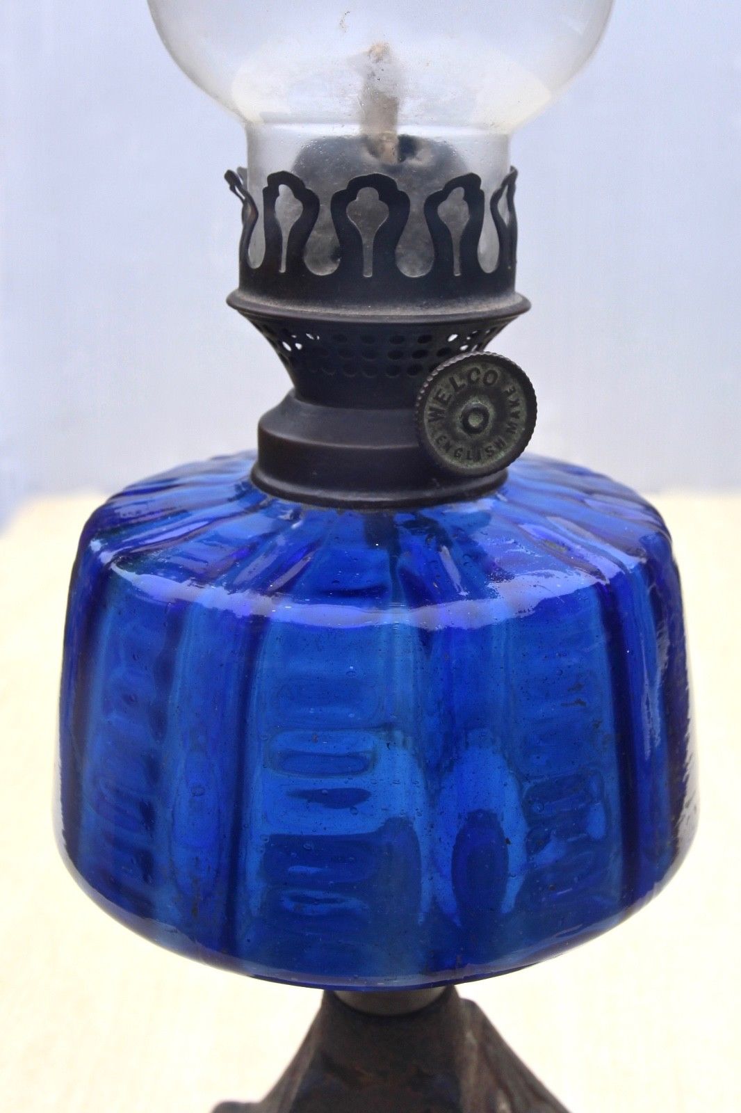 Title (ebay affiliate link): VINTAGE c1900''s ORIGINAL OIL LAMP COBALT BLUE FLUTED GLASS FONT + BASE + BURNER