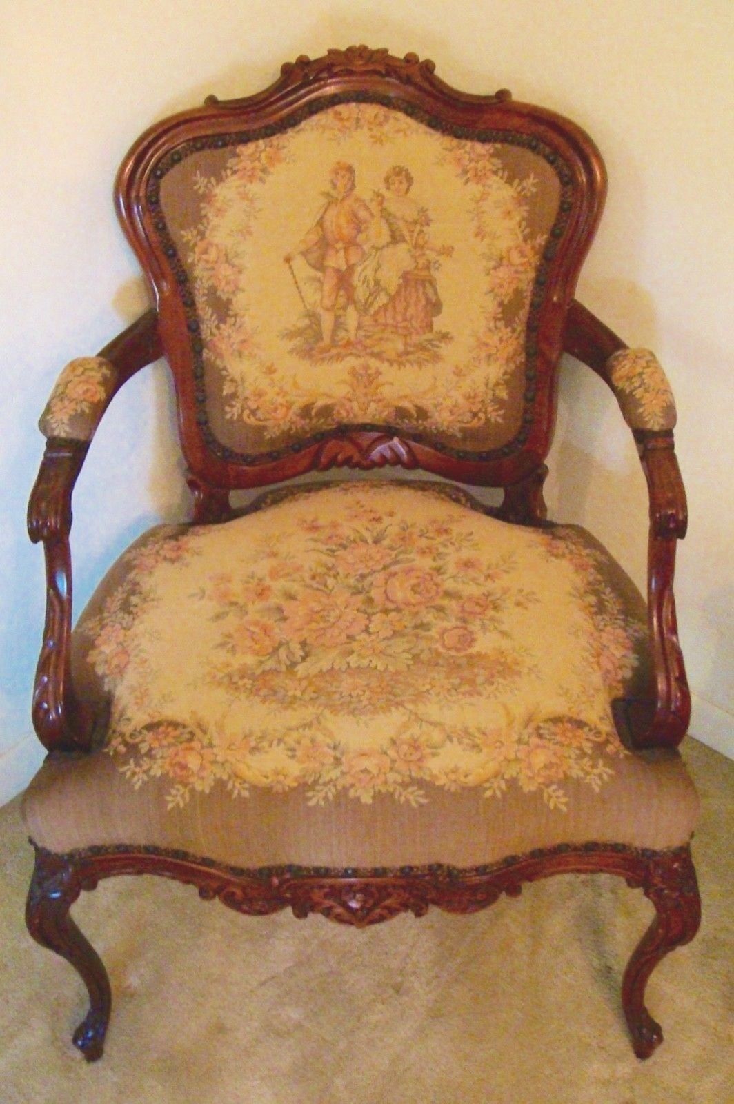 Title (ebay affiliate link): Vintage French Provincial Tapestry Arm Chair Accent Occasional LOCAL PICKUP