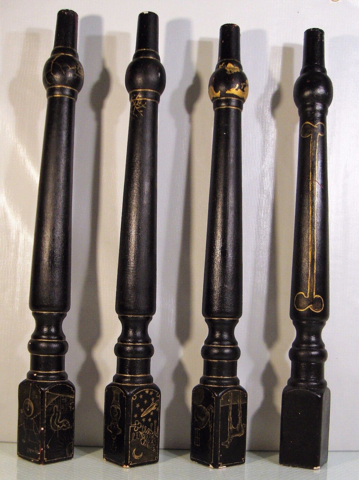 Title (ebay affiliate link): 4 Bolted Vintage Salvage Wood Table Legs Black with Gold Artist Painted Unusual