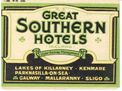 GREAT SOUTHERN HOTELS railway luggage label Ireland