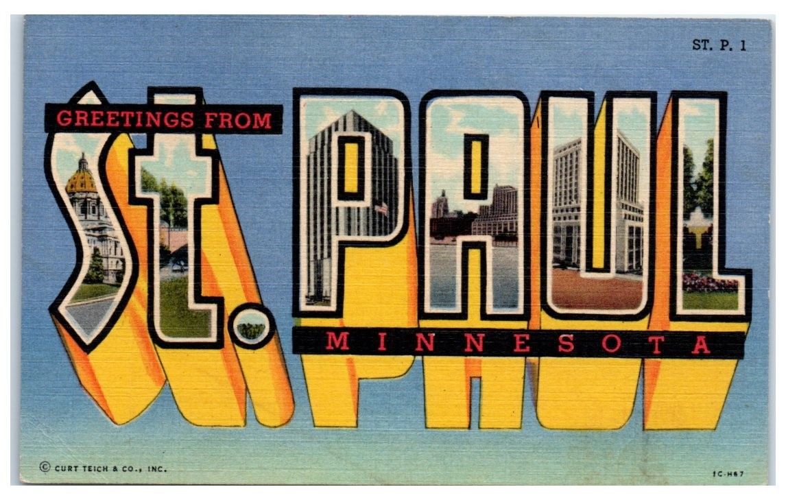 Title (ebay affiliate link): Mid-1900s Greetings from St. Paul, MN LARGE LETTER Postcard