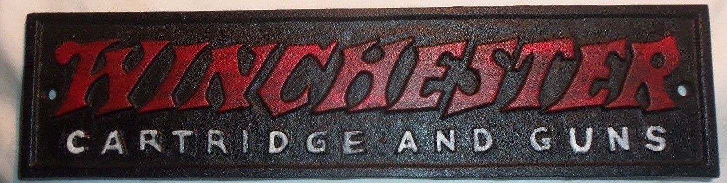 Title (ebay affiliate link): Cast Iron Winchester Rifle Sign Repeating Arms Cartridge And Guns Painted Sign