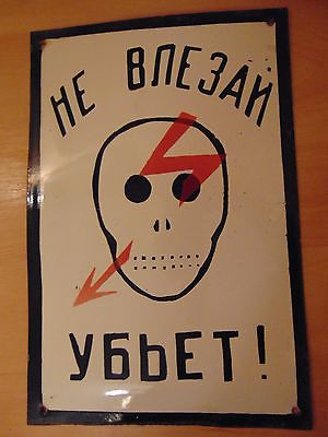 VINTAGE RUSSIA DANGER SIGN ENAMEL PORCELAIN INDUSTRIAL Electric DEATH metal skul