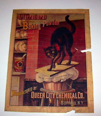 Title (ebay affiliate link): VINTAGE INTERNATIONAL BAKING POWDER BLACK CAT QUEEN CITY CHEMICAL CO. ART AD