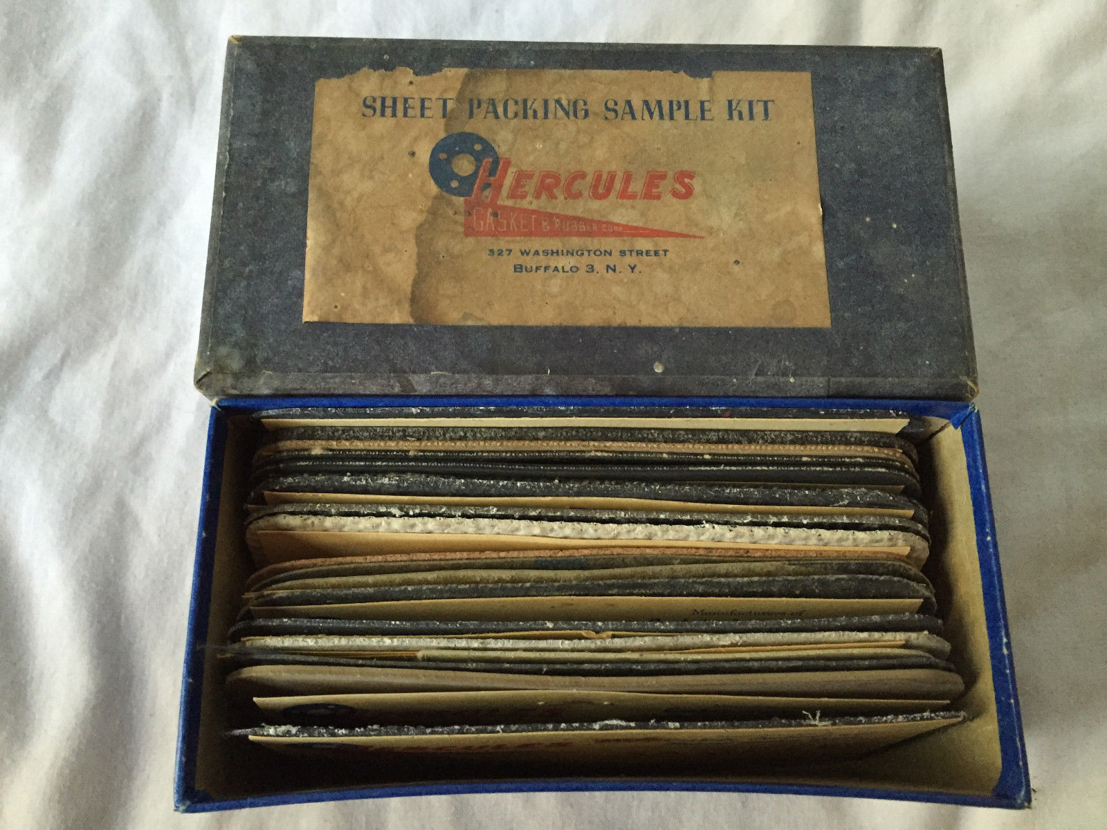 Title (ebay affiliate link): Vintage HERCULES Sheet Packing Sample Kit ASBESTOS SHEET w/ Box Tags 18pcs