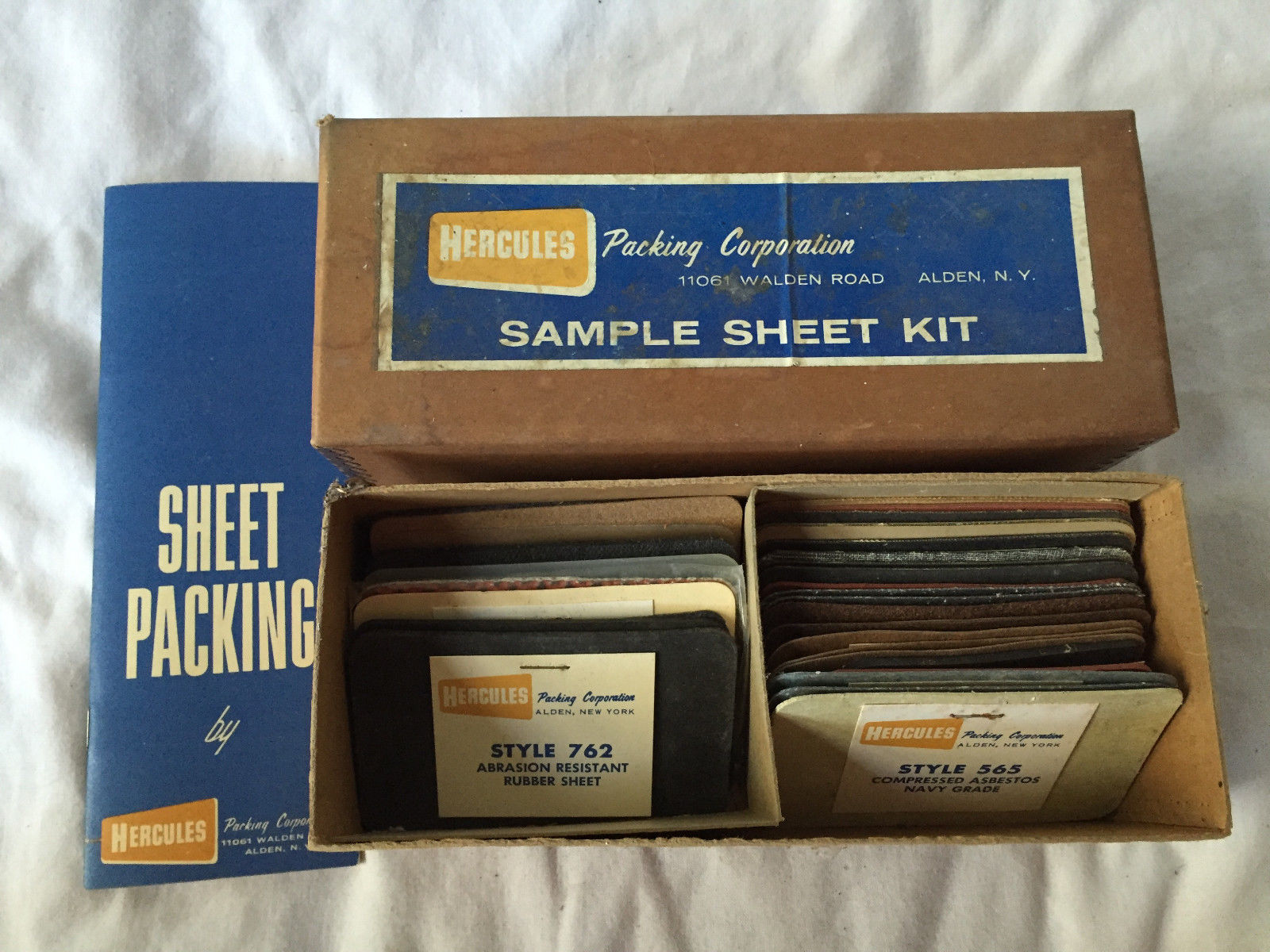 Title (ebay affiliate link): Vintage HERCULES Sample Sheet Kit ASBESTOS SHEET w/ Box Tags 29pcs Catalog