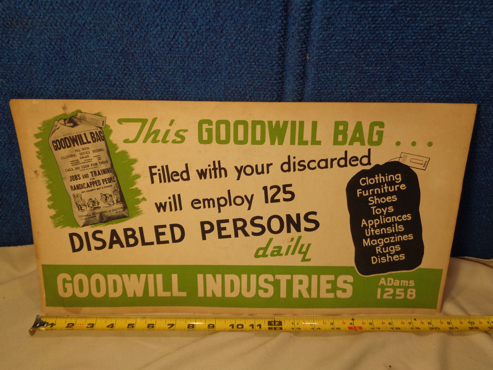 Title (ebay affiliate link): VINTAGE STORE ADVERTISING SIGN #1 **GOODWILL INDUSTRIES** 21" X 11"