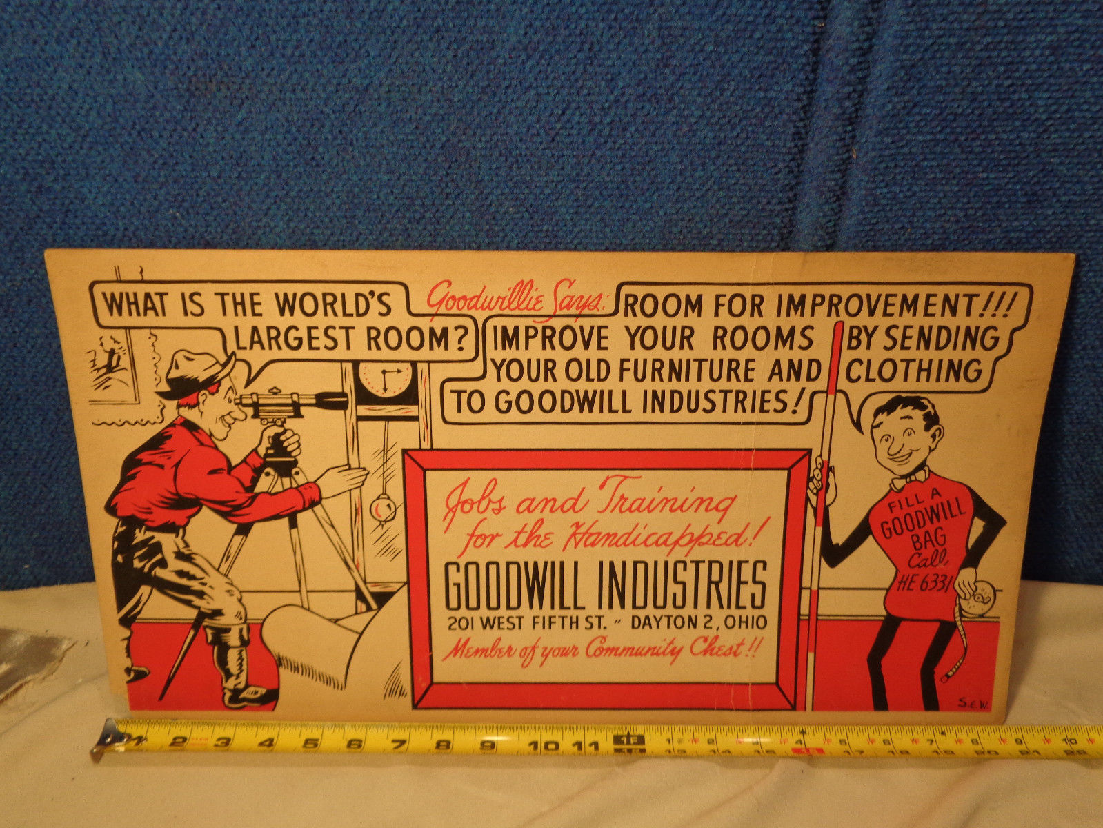 Title (ebay affiliate link): VINTAGE STORE ADVERTISING SIGN #2 **GOODWILL INDUSTRIES** 21" X 11"