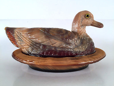 Title (ebay affiliate link): Rosso Westmoreland Chocolate Milk Glass Duck on Wavy Base Covered Dish