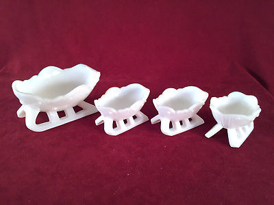 Title (ebay affiliate link): Fostoria Milk Glass Master Salt Sleigh and 3 Three Individual Sleigh Salts