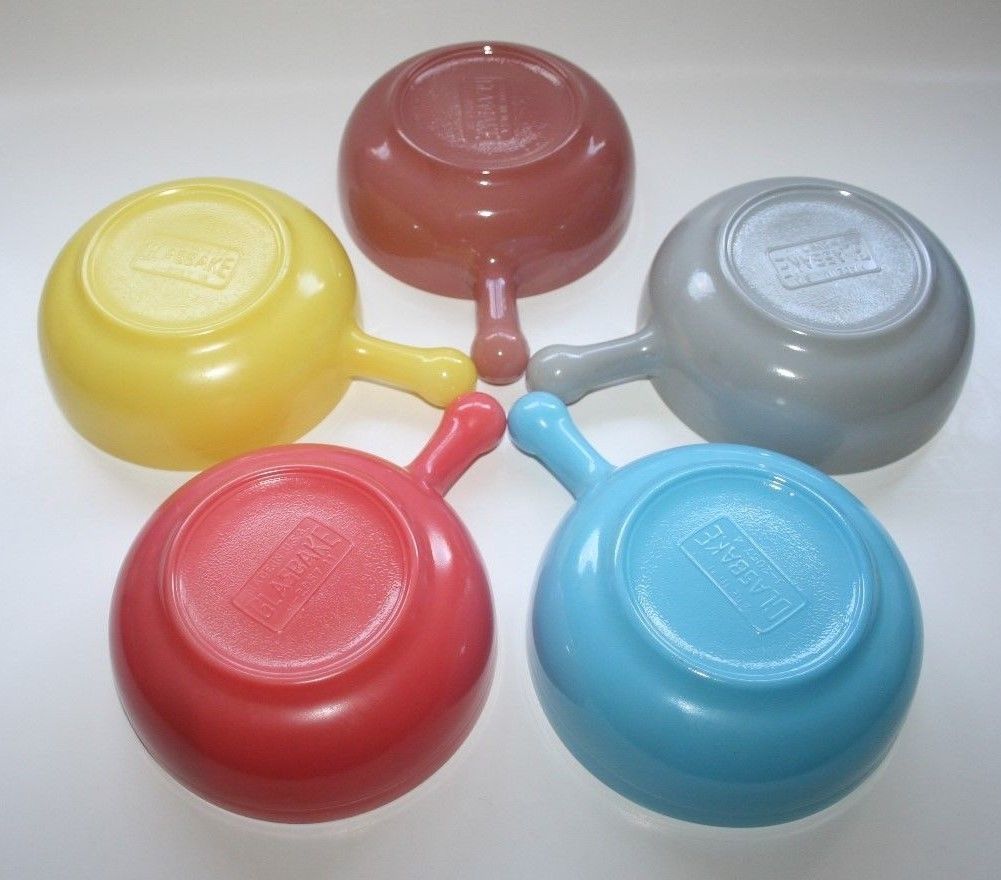 Title (ebay affiliate link): Vintage Glasbake French Casserole Lug Handle Soup Chili Bowl 5Colors Milk Glass